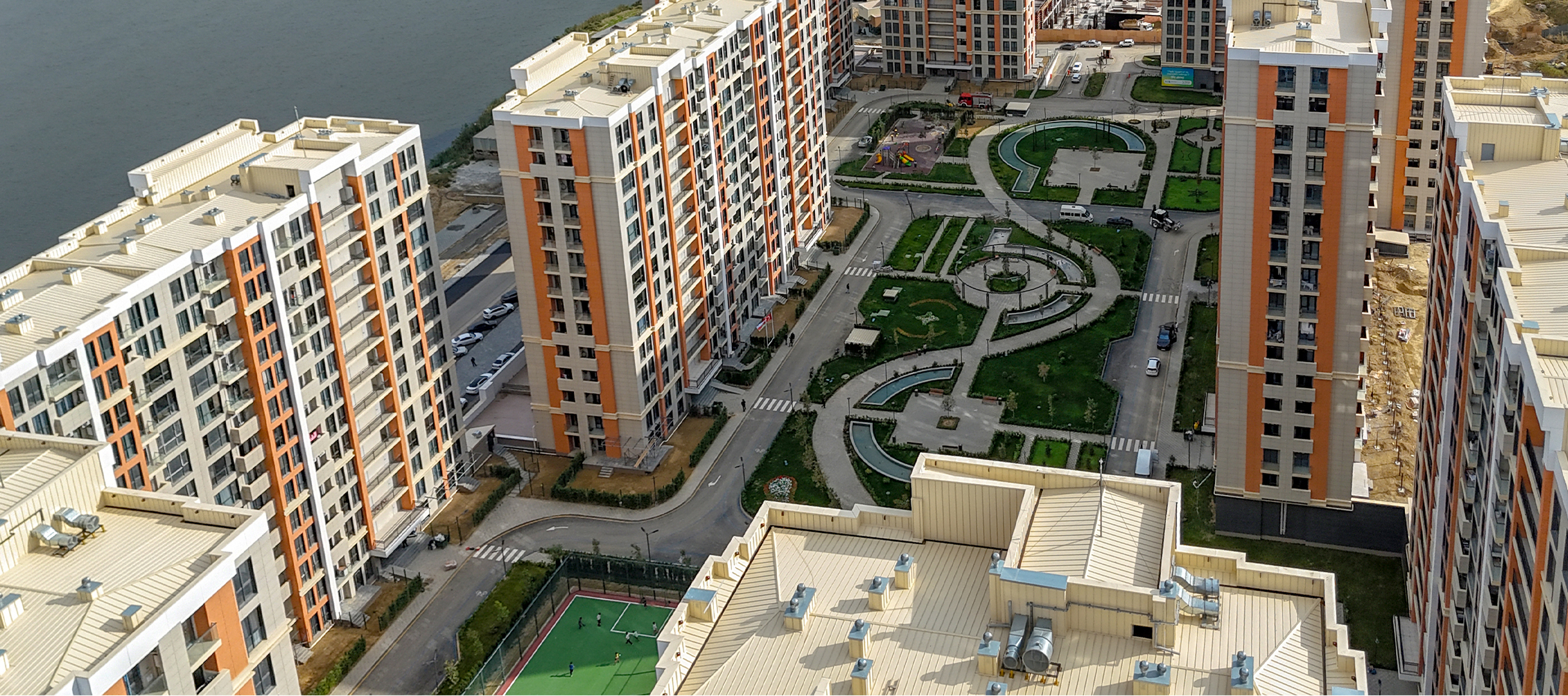 Kompleksdə hazır və inşası davam edən binalarda 37,86 m²-dən 120,47 m²-ə qədər 2, 3, 4 otaqlı və studiya tipli mənzillər də satışdadır.