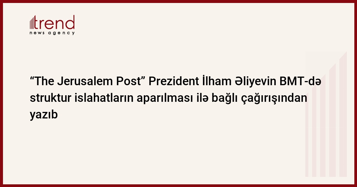 Diasporla İş üzrə Dövlət Komitəsindən Trend-ə bildirilib ki, bu barədə Dona Qrasiya Diplomatiya Mərkəzinin təsisçisi və baş direktoru, tanınmış siyasi şərhçi və jurnalist Reyçel Avraham İsrail və dünyanın ən nüfuzlu nəşrlərindən olan “The Jerusalem Post”da dərc edilən “Yenidənqurma vaxtı: institutsional iflic fonunda Tramp və Əliyev BMT-də islahatlara çağırırlar” başlıqlı məqalədə yazıb. Təşkilatın öz Təhlükəsizlik Şurasının daimi üzvlərinin vetolarının girovu kimi qalmaqla münaqişələri həll etmək iqtidarında olmadığını, ECOSOC və BMT-nin sülhməramlı missiyaları kimi qurumların səmərəsizliyə və bürokratiyaya görə etibarlılığını xeyli itirdiyini, islahatların sonsuz olaraq ləngidiyi və kiçik dövlətlərin özlərini kənarda hiss etdiyini, belə bir məqamda “Sıfırlama vaxtıdır” ifadəsinin populyarlıq qazandığını diqqətə çatdırıb.
