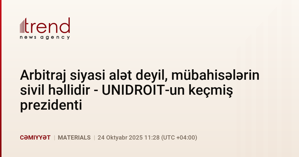 Trend xəbər verir ki, bu fikirləri UNIDROIT-un keçmiş prezidenti Maria Chiara Malaguti Bakı Arbitraj Mərkəzinin açılış mərasimindəki çıxışı zamanı səsləndirib.