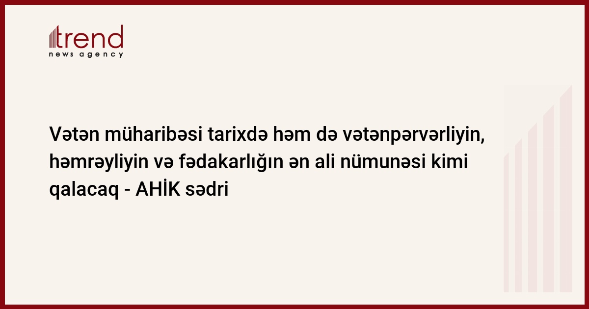 O deyib ki, Azərbaycan əsgəri döyüş meydanında, xalq isə arxa cəbhədə bir məqsədlə - Vətən uğrunda qalib gəlmək əzmi ilə birləşib: "Hər bir vətəndaş bu Qələbəyə öz töhvəsini verdi. 44 günlük Vətən müharibəsi tarixdə həm də vətənpərvərliyin, həmrəyliyin və fədakarlığın ən ali nümunəsi kimi qalacaq".