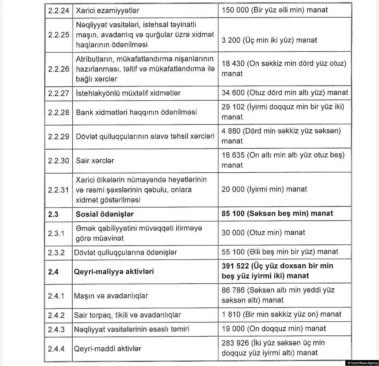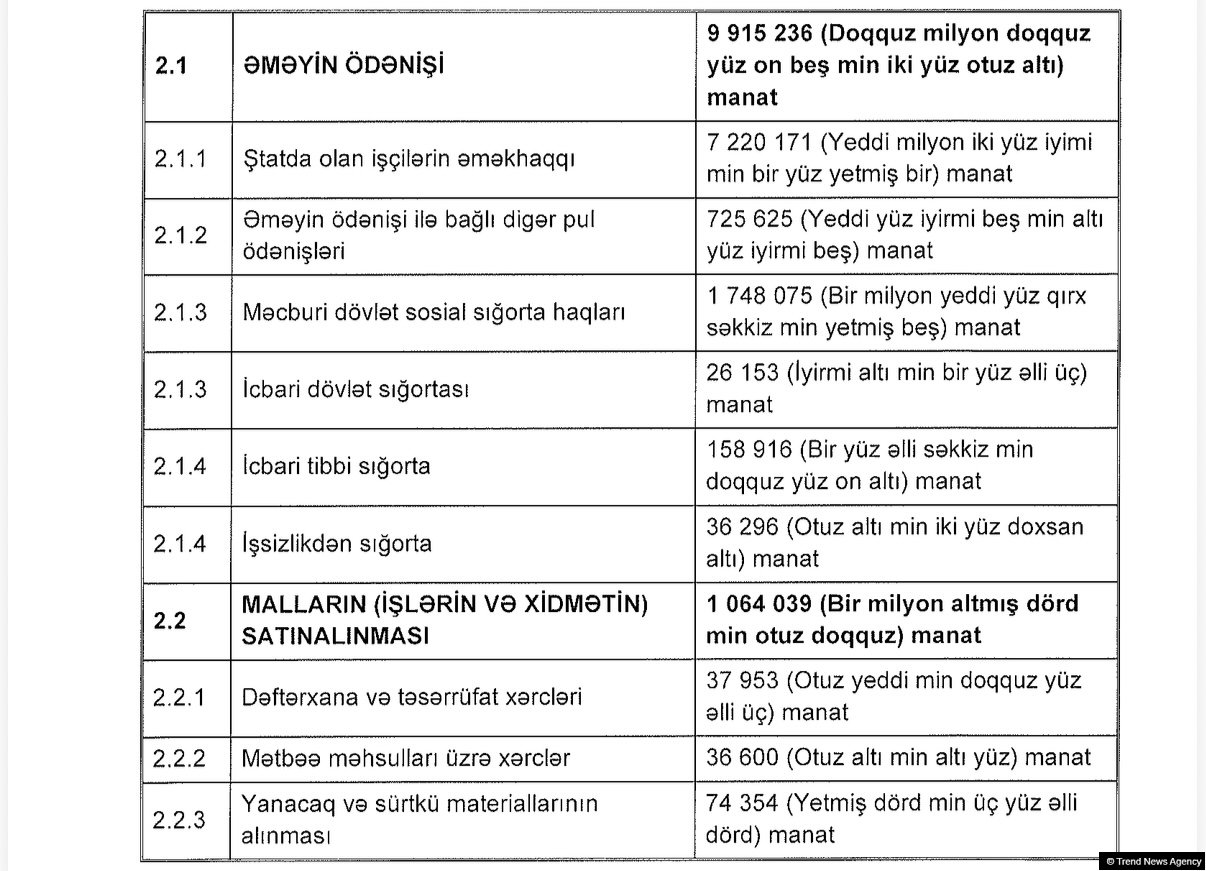 Sənədə əsasən, Hesablama Palatasının 2026-cı il üçün xərclər smetası aşağıdakı qaydada bölüşdürülüb: