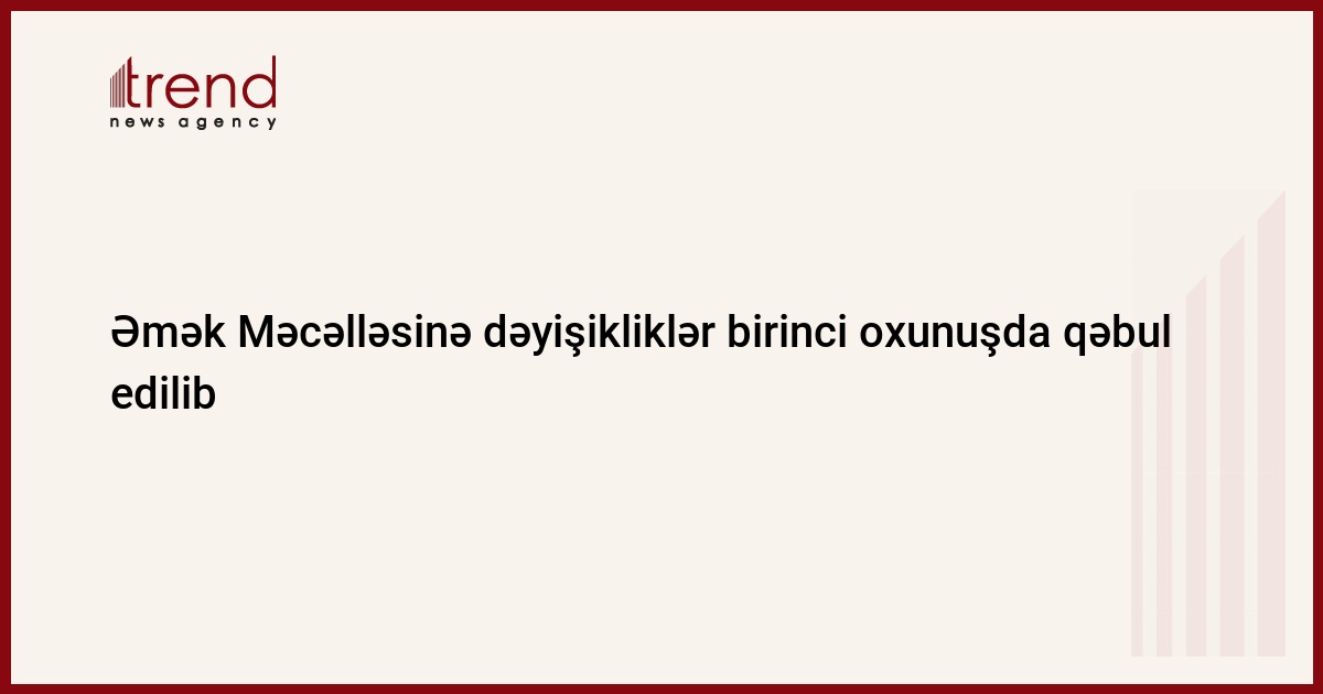 Əmək Məcəlləsinə təklif edilən dəyişikliklər Milli Məclisdə birinci oxunuşda qəbul edilib.