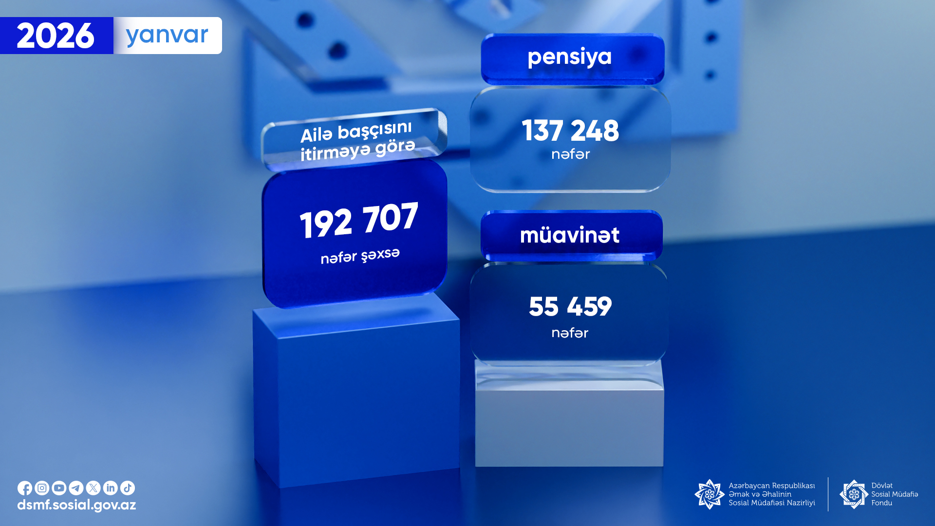 2026-cı ilin yanvar ayında ailə başçısını itirməyə görə 192 707 nəfər şəxsə pensiya və müavinət ödənilib.