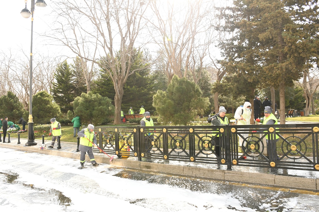 Xidmətin əməkdaşları tərəfindən prospekt və küçələrin, səki kənarlarının, bordyurların və buradakı işıq dirəklərinin, yol kənarındakı məhəccərlərin, park və istirahət yerlərində oturacaqların yuyulması həyata keçirilib, həyət və yaşayış məhəllələrində təmizlik işləri görülüb. İctimai-iaşə, ticarət və digər obyektlərin vitrinləri təmizlənib, ətrafında səliqə-sahman yaradılıb.