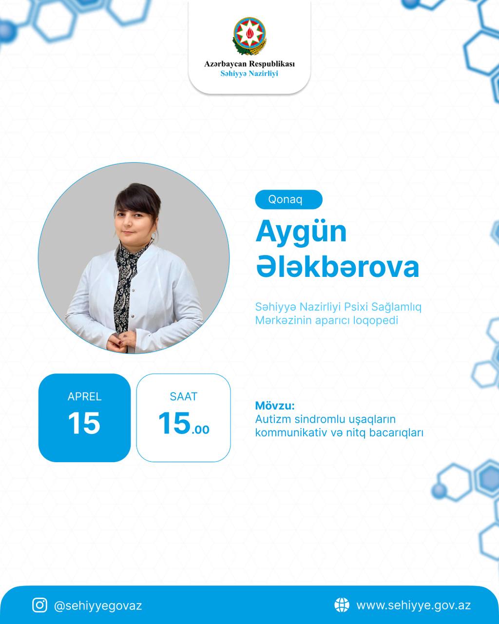 Trend xəbər verir ki, bu fikirləri Səhiyyə Nazirliyinin rəsmi “Instagram” hesabında keçirilən canlı yayım zamanı nazirliyin Respublika Psixi Sağlamlıq Mərkəzinin loqopedi Aygün Ələkbərova açıqlayıb.