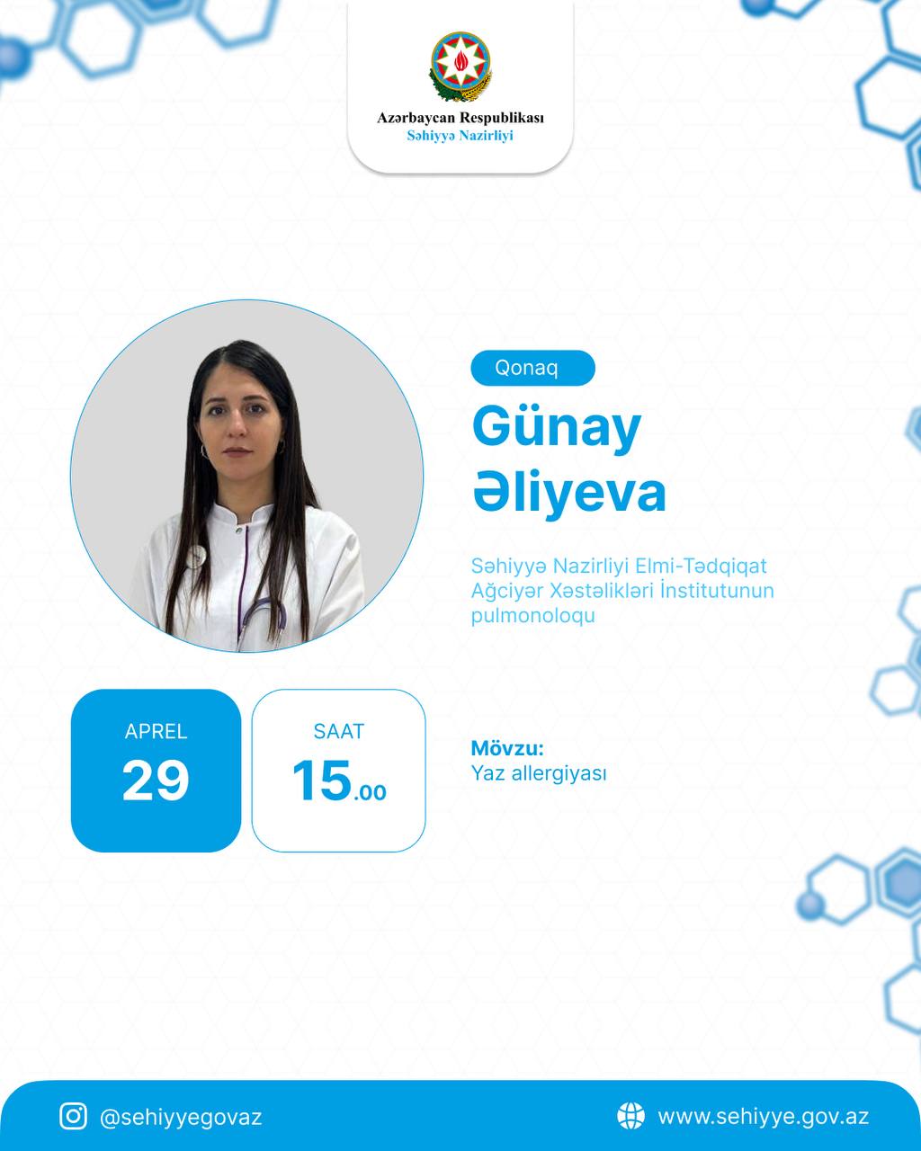 Trend xəbər verir ki, bu fikirləri Səhiyyə Nazirliyinin rəsmi “Instagram” hesabında keçirilən canlı yayım zamanı Səhiyyə Nazirliyi Elmi-Tədqiqat Ağciyər Xəstəlikləri İnstitutunun pulmonoloqu Günay Əliyeva açıqlayıb.