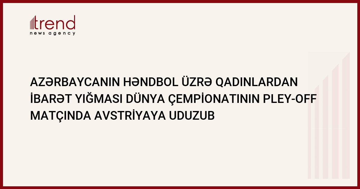 Azərbaycanın həndbol üzrə qadınlardan ibarət yığması dünya çempionatının final mərhələsində sona qədər mübarizə apara bilməyib. Trend in məlumatına görə, Vyanada Avstriyanın komandasına qarşı pley-off cavab matçında Valeriya Pevnitskinin himayədarları 38:19 hesabı il əciddi məğlubiyyətə uğrayıblar. Birincihissə demək olar ki, meydan sahiblərinin üstünlüyü ilə (20 xal) başa çatıb ki, bu da qalibin kimin olacağı məsələsini birdəfəlik həll edib.