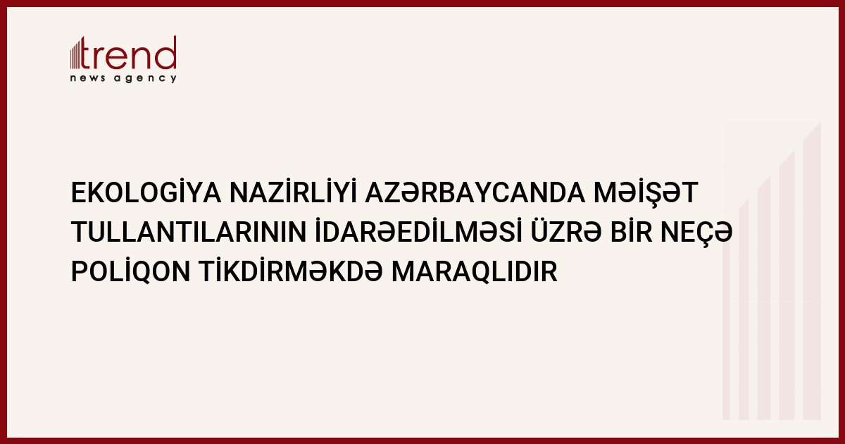 Ekologiya və təbii sərvətlər Nazirliyi Azərbaycanın regionlarında məişət tullantılarının idarəedilməsi üzrə bir neçə poliqon tikdirməkdə maraqlıdır.Bu barədə Trend agentliyinə ekologiya və təbii sərvətlər naziri Hüseyn Bağırov bildirib.Bu işlər ölkə hökuməti tərəfindən şəyata keçirilməlidir, özəl şirkətlər isə onları idarə edə bilər.Belə poliqonlar Mingəçevirdə, Gəncədə və ölkənin digər regionlarında tikilə bilər.