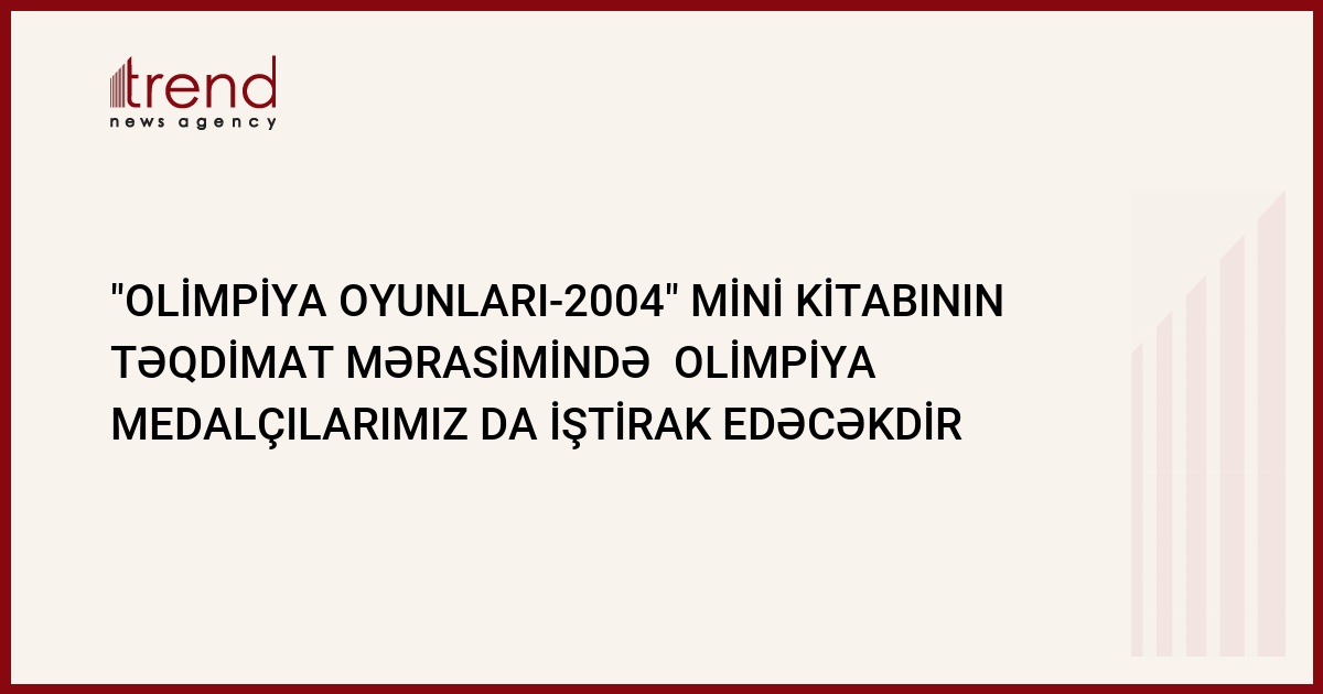 İyulun 6-da İçərişəhərdəki Minüatur Kitab Mərkəzində "Olimpiya oyunları-2004" adlı mini kitabın təqdimat mərasimi keçiriləcəkdir. Bu haqda mərkəzin direktoru Zərifə Salahova Trend ə verdiyi müsahibəsində bildirmişdir.