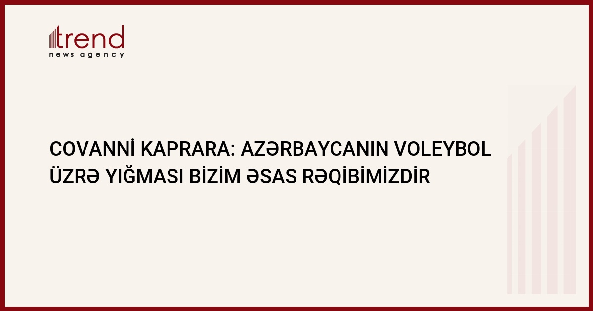 "Azərbaycan yığması dünya çempionatının seçmə turnirinin üçüncü mərhələsində bizim əsas rəqibimiz olacaq". Bu barədə Rusiyanın voleybol yığmasının baş məşqçisi Covanni Kaprara bəyan edib. Trend in məlumatına görə, Olimpi oyunları finalçılarının rəhbəri Faiq Qaryevin yetirmələri ilə görüş oyunların sonuncu günündə baş tutacağından məmnun qaldığını bilidirib.