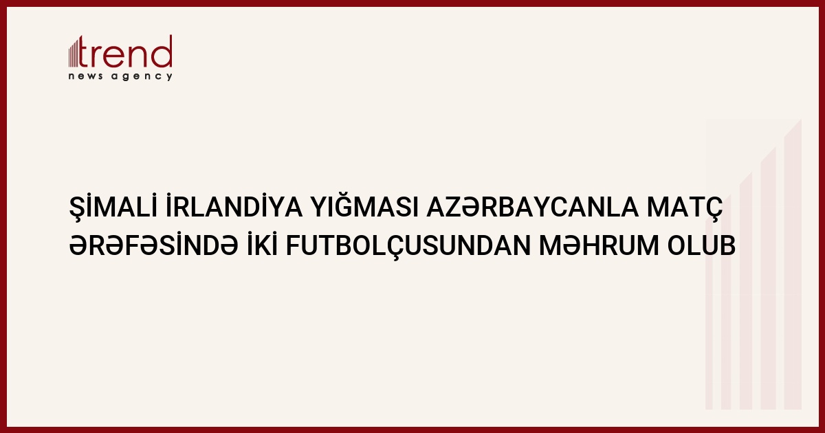 Sentyabrın 3-də Belfastda keçiriləcək dünya çempionatının seçmə yarışında Azərbaycan yığması ilə oynamağaq Şimali İrlandiya yığmasının iki futbolçusu intizam sanksiyalarına görə meydana çıxmayacaq.