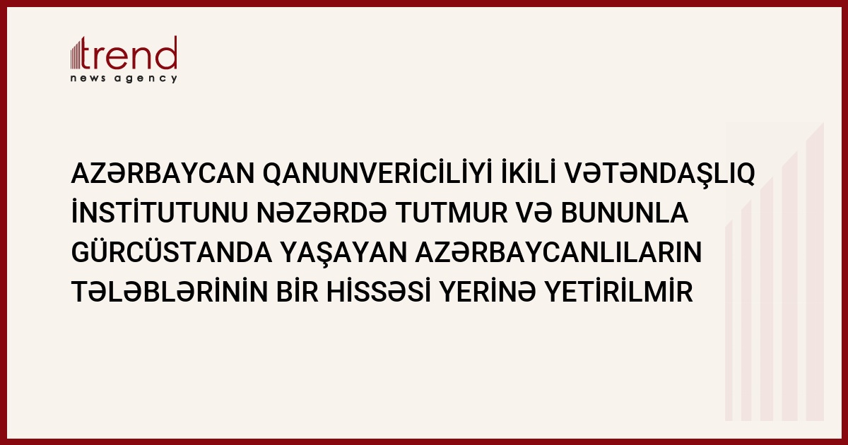 Azərbaycan qanunvericiliyi ikili vətəndaşlıq institutunu nəzərdə tutmur və bu, Gürcüstanda yaşayan azərbaycanlıların tələblərinin bir hissəsinin yerinə yetirilməsini mümkünsüz edir.