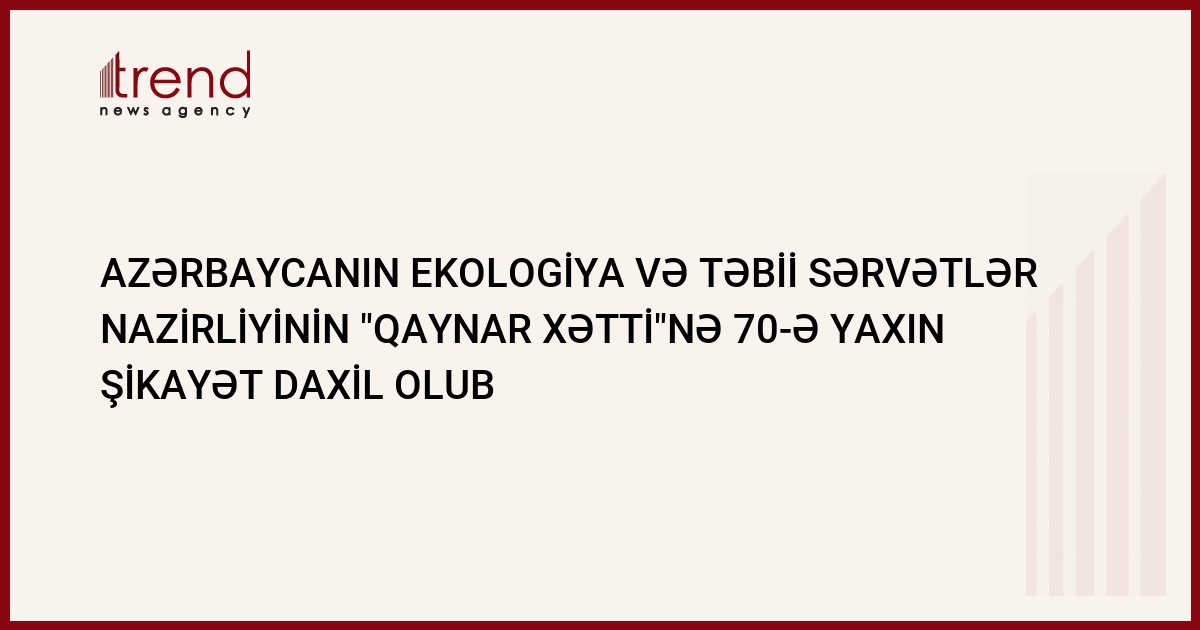 8 ay ərzində Azərbaycanın Ekologiya və Təbii Sərvətlər Nazirliyinin "Qaynar xətti"nə 70-ə yaxın məlumat və şikayət daxil olub. Nazirlikdən Trend ə bildirildiyi kimi, daxil olan məlumatların 40-ı yaşıllıqların qırılması, digərləri isə ətraf mühitin qanunsuz olaraq kimyəvi tullantılarla çirkləndirilməsi ilə bağlıdır. Həmçinin, Xəzər dənizinin sahillərindən qumun daşınması ilə bağlı şikayətlər də var.