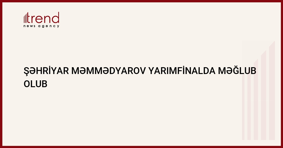 Lozannada gənc qrossmeysterlərin turnirində şahmatçımız Şəhriyar Məmmədyarov yarımfinalda məğlub olub. Trend in xəbər verdiyi kimi, birinci partiyada uduzan Şəhriyar ikinci partiyada qalib gəlib.