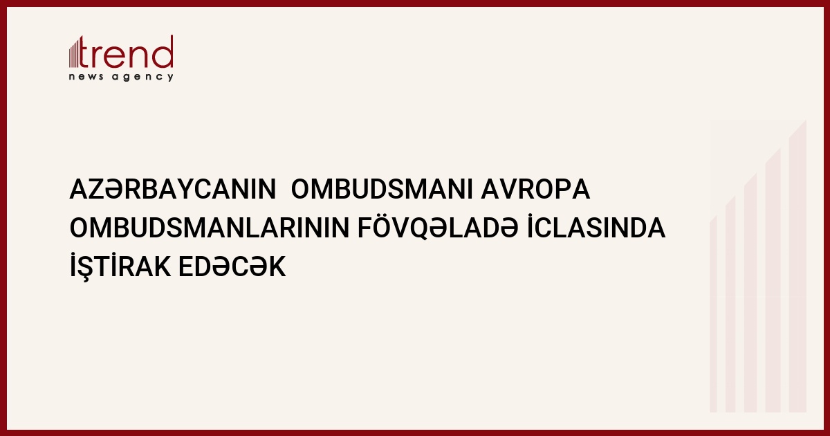 Azərbaycanın insan hüquqları üzrə müvəkkili (ombudsman) Avropa ölkələri ombudsmanlar institutunun sentyabrın 24-də Vilnüsdə keçiriləcək fövqəladə iclasında iştirak edəcək.