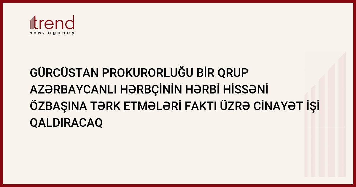 Gürcüstan hərbi prokurorluğu azərbaycanlı hərbçilərin bir qrupunun Gürcüstanın Müdafiə Nazirliyinin hissələrinin birini özbaşına tərk etmələri faktü üzrə cinayət işi qaldıracaq. Bu barədə Trend əAzərbaycanın Gürcüstandakı səfirliyinin mətbuat xidmətinin rəhbəri Elxan Poluxov məlumat verib.