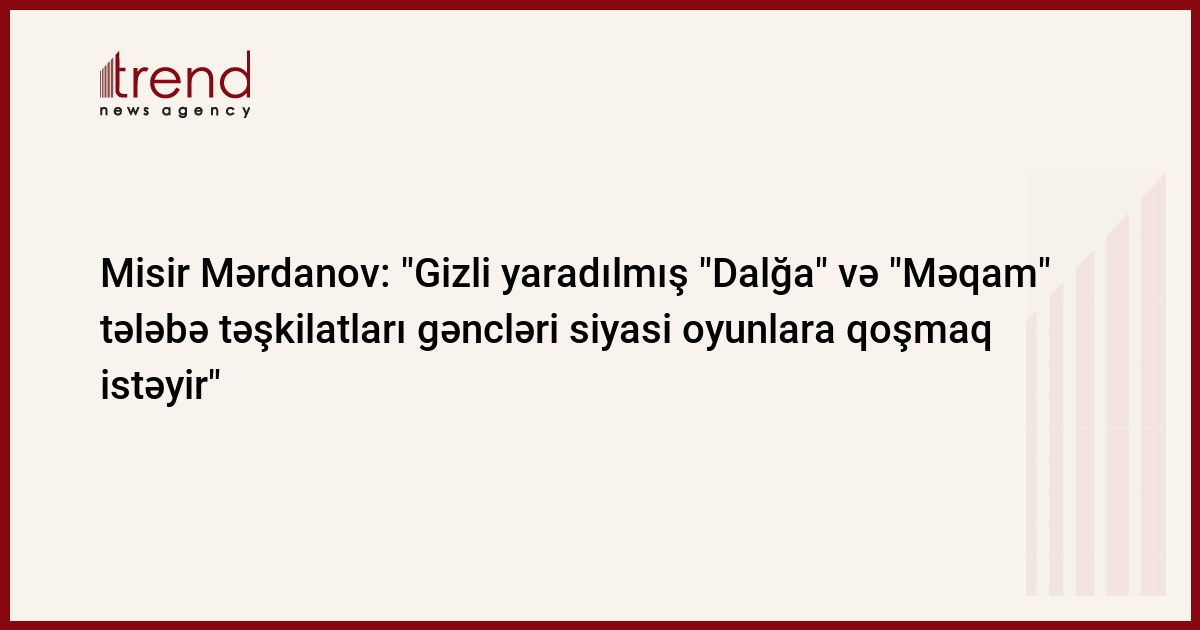 "Gizli yaradılmış "Dalğa" və "Məqam" tələbə təşkilatları gəncləri siyasi oyunlara qoşmaq istəyir". Trend in xəbər verdiyi kimi, bu barədə jurnalistlərlə söhbətində Azərbaycan Respublikasının təhsil naziri Misir Mərdanov bildirib.