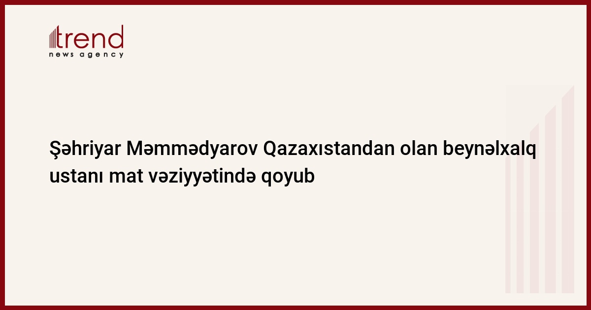 Azərbaycan qrossmeysteri Şəhriyar Məmmədyarov Xantı-Mansiyskdə şahmat üzrə keçirilən dünya Kubokunun birinci raundunun ikinci partiyasında 31-ci gedişdə ağ fiqurlarla oynayaraq Qazaxıstandan olan beynəlxalq usta Nurlan İbrayevin şahını mat edib.
