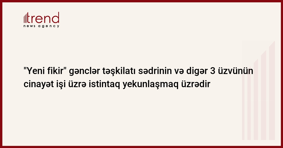 Dekabrın ikinci yarısında "Yeni fikir" Gənclər Təşkitanının sədri Ruslan Bəşirlinin və təşkilatın digər üç üzvünün cinayət işi üzrə ibtidai istintaq başa çatacaq. Bu barədə Trend ə R.Bəşirlinin vəkili Elçin Qəmbərov məlumat verib.