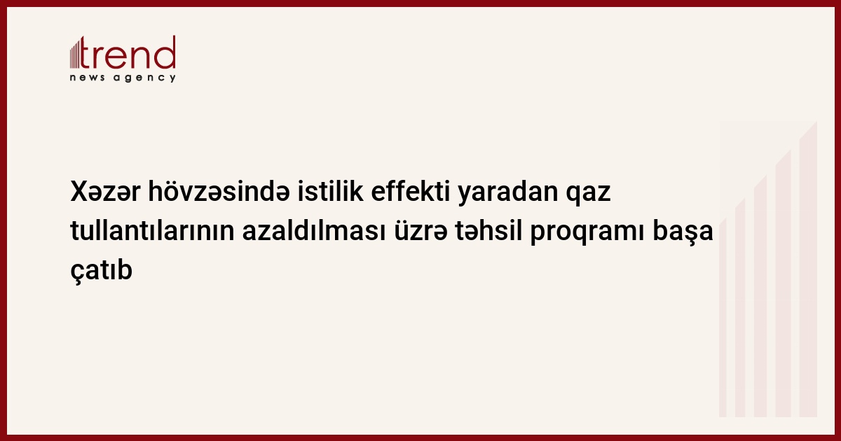 Xəzər hövzəsində istilik effekti yaradan qaz tullantılarının azaldılması üzrə təhsil proqramı başa çatıb. Trend in xəbər verdiyi kimi, bununla əlaqədar martın 23-də Azərbaycanın Ekologiya və Təbii Sərvətlər Nazirliyində bir sıra dövlət idarələri nümayəndələrinin iştirakı ilə tədbir keçirilib.
