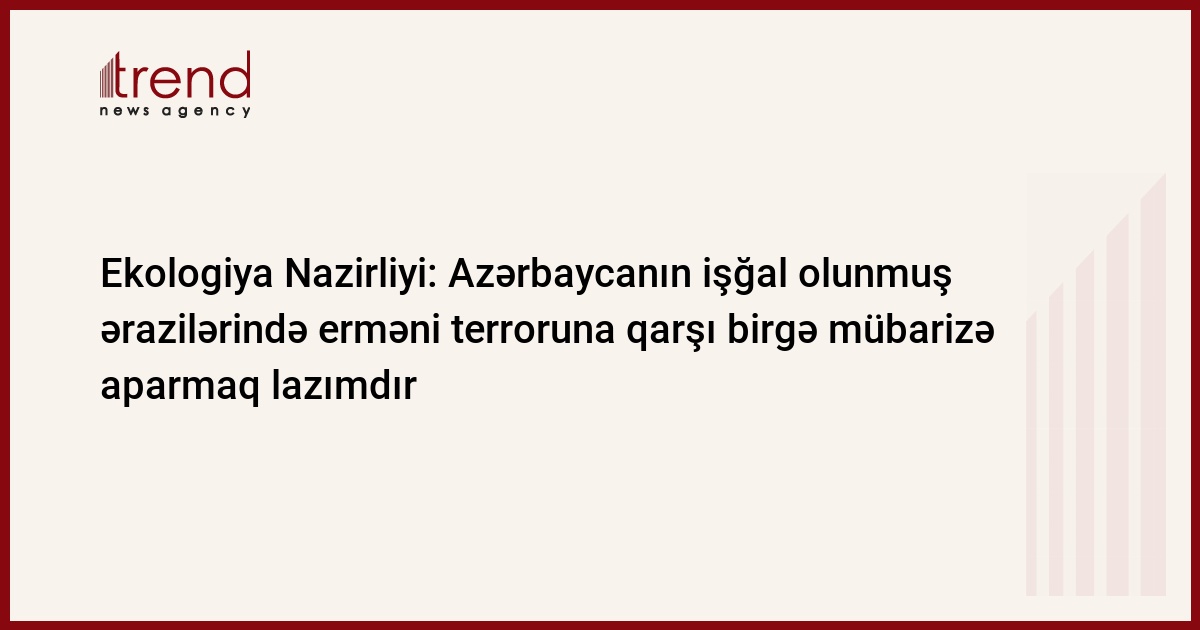Azərbaycanın işğal olunmuş ərazilərində ermənilərin ekoloji terroruna qarşı birgə mübarizə aparmaq lazımdır. Bu barədə Trend agentliyinə əsasən, Azərbaycanın Ekologiya Nazirliyinin yaydığı məlumatda deyilir.