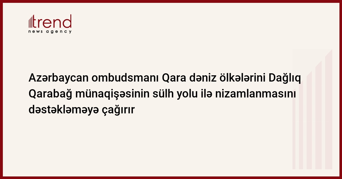 Azərbaycan ombudsmanı Qara dəniz dövlətlərini regionda əməkdaşlığı möhkəmlətmək məqsədilə Ermənistan-Azərbaycan, Dağlıq Qarabağ münaqişəsinin sülh yolu ilə nizamlanmasını dəstəkləməyə çağırır.