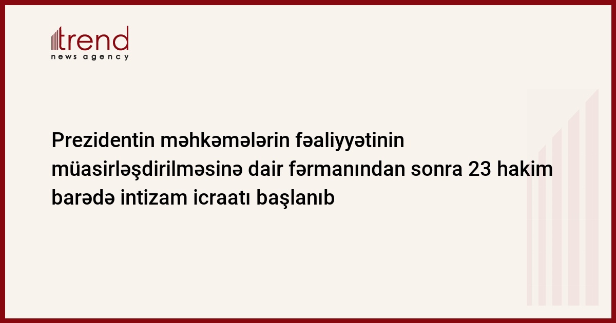 Azərbaycan Prezidenti İlham Əliyevin məhkəmələrin fəaliyyətinin müasirləşdirilməsinə dair 19 yanvar 2006-cı il tarixli fərmanından sonra 23 hakim barədə intizam icraatı başlanıb. Bu barədə Trend ə Məhkəmə Hüquq Şurası Aparatının rəhbəri Cavid Hüseynov məlumat verib.