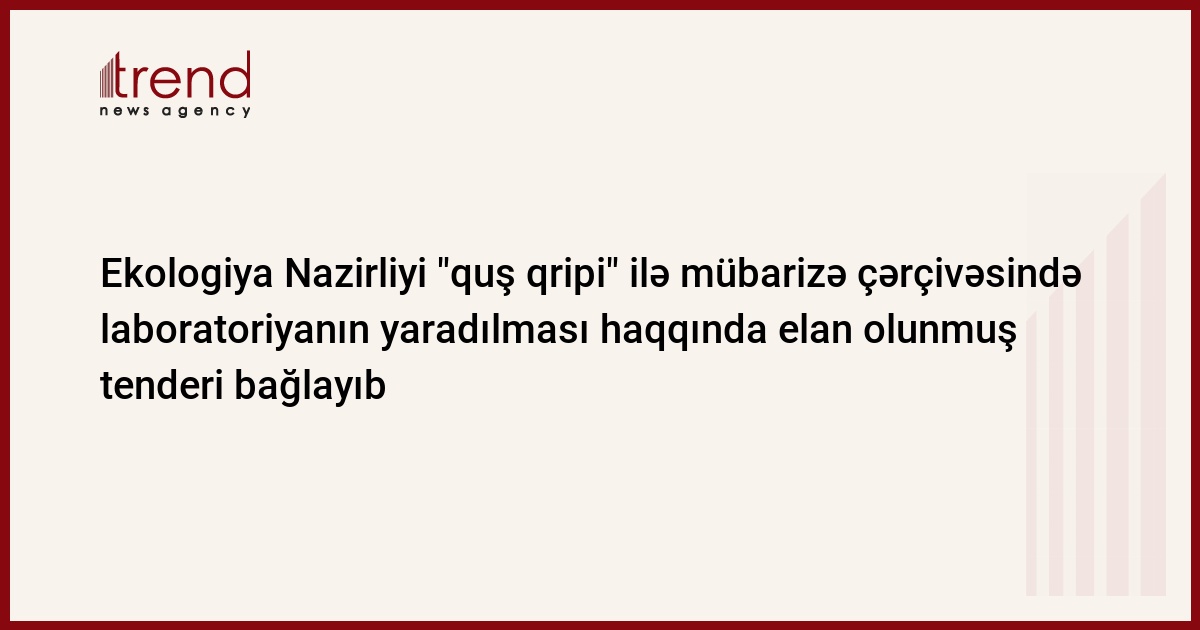 Ekologiya və Təbii Sərvətlər Nazirliyi ilin sonuna qədər heyvanlar arasında yayılmış xəstəliklərin, xüsusilə, "quş qripi"nin tədqiqi üzrə laboratoriya yaradacaq. Nazirlikdən Trend ə verilən məlumata əsasən, avadanlığın alqısı üzrə tenderin qalibi Türkiyənin Altunok Medical şirkəti elan edilib.