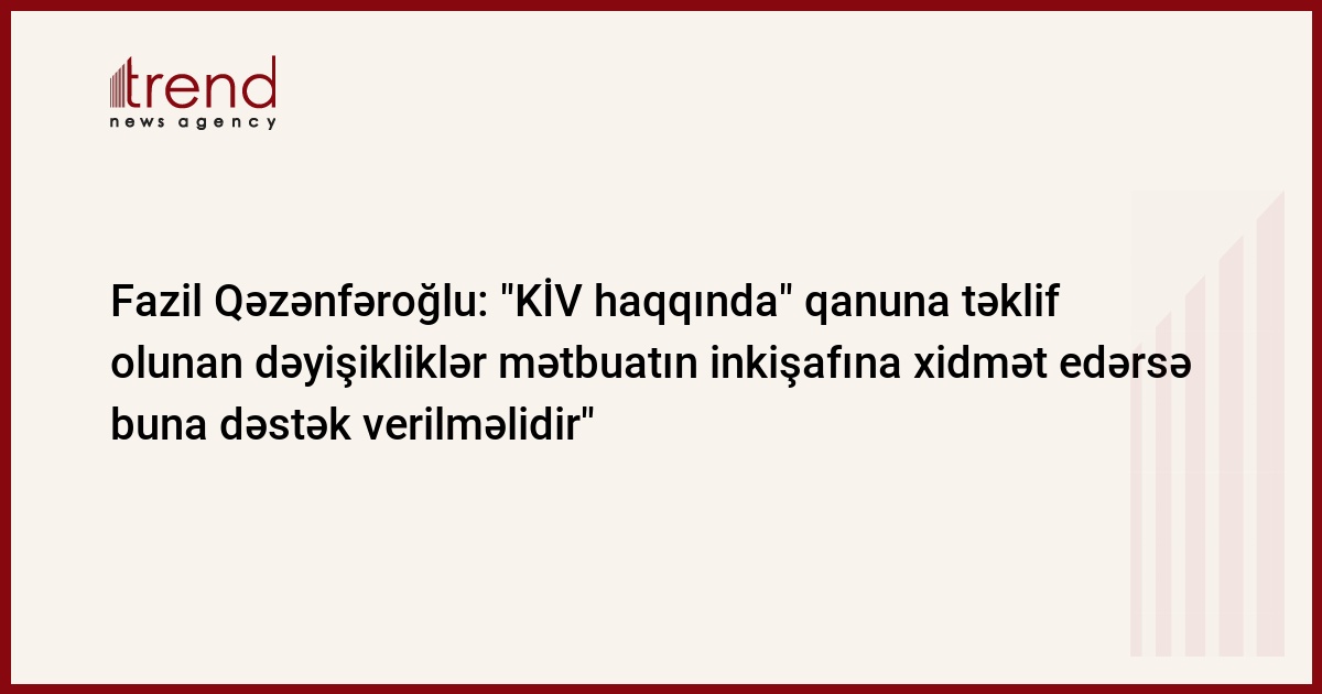 "Kütləvi İnformasiya Vasitələri haqqında" qanunda bir sıra boşluqlar mövcuddur. Bu barədə Trend ə Böyük Quruluş Partiyasının sədri, millət vəkili Fazil Qəzənfəroğlu bir sıra jurnalist təşkilatların adıçəkilən qanunun dəyişdirilməsi ilə bağlı apardığı müzakirələrinə münasibət bildirərəkən qeyd edib.