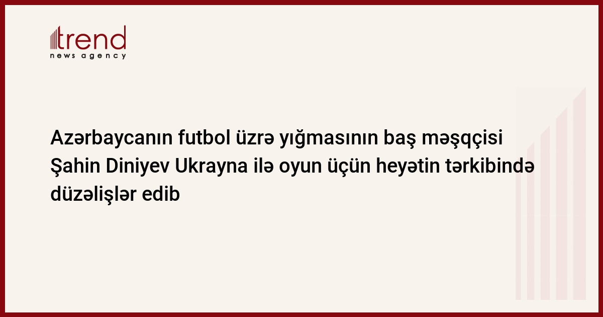 Azərbaycan yığmasının məşqçisi Şahin Diniyev avqustun 15-də Kiyevin "Dinamo" stadionunda keçiriləcək Ukraynaya qarşı yoldaşlıq oyununda heyətin tərkibində düzəliş etməyə məcburdur.