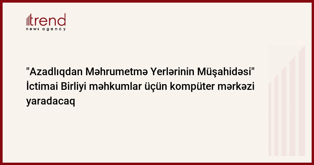 yetkinlik yaşına çatmayan məhkumların cəza çəkdikləri Ədliyyə Nazirliyi Məhkəmə Qərarlarının İcrası Baş İdarəsinin Tərbiyə Müəssisəsində məhkumlar üçün "Kompüter Biliklərinin Tədrisi Mərkəzi" yaradacaq. Bu barədə Trend ə "Azadlıqdan Məhrumetmə Yerlərinin Müşahidəsi" İctimai Birliyindən məlumat verilib.