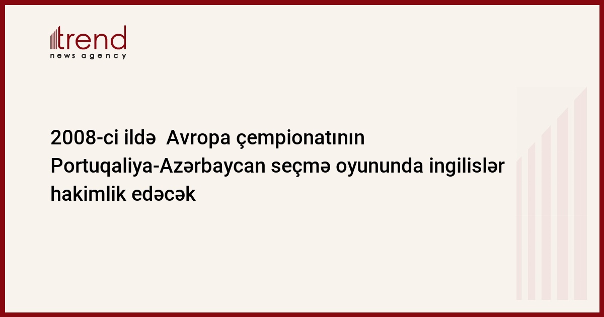 İngiltərənin hakim briqadası futbol üzrə 2008-ci il Avropa çempionatının oktyabrın 7-də Portuda keçiriləcək Portuqaliya -Azərbaycan seçmə oyununda hakimlik edəcək.