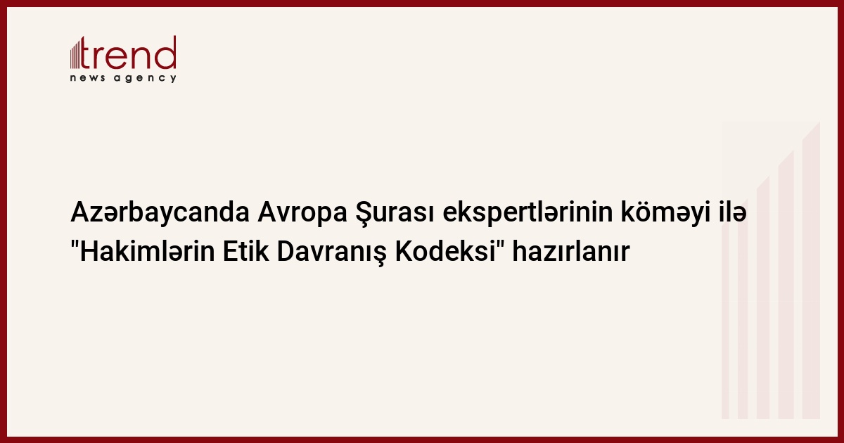 Azərbaycanda Avropa Şurası ekspertlərinin köməyi ilə hakimlər üçün "Etik Davranış Kodeksi" hazırlanır. Bu barədə Trend ə Azərbaycan Respublikası Ədliyyə Nazirliyinin mətbuat xidmətindən məlumat verilib.