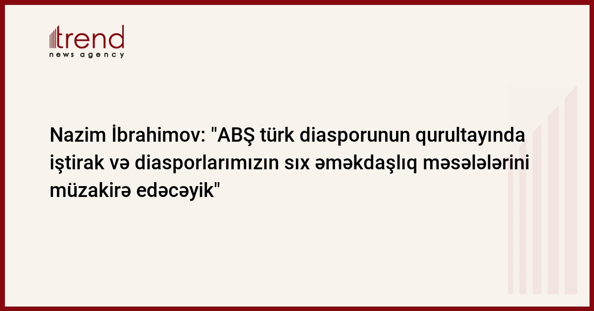 "Biz hər zaman dünyada yaşayan türklərin iri miqyaslı tədbirlərində iştirak edirik. Bildiyiniz kimi, Azərbaycan prezidentinin bizə verdiyi tapşırığa əsasən, dünyada olan türk diasporları ilə sıx əlaqələr saxlayır, onlarla birgə işləyirik. Nümayəndə heyətimizin ABŞ səfəri zamanı türk diasporunun qurultayında iştirak edəcək və Amerikada yaşayan tükrlərlə söhbətlərimiz olacaq. Azərbaycan və türk diasporlarının birgə fəaliyyətinə, sıx əməkdaşlığına dair hansı işlər görüləcəyini bir daha müzakirə edəcəyik. Gələn il mart ayında Bakıda keçirilməsi nəzərdə tutulan Azərbaycan-Türk diasporlarının birgə Forumunda iştirak barədə danışılacaq"-deyə N.İbrahimov bildirib.