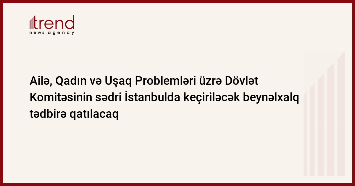 Noyabrın 20-də Türkiyənin İstanbul şəhərində "İslam konfransı təşkilatı dövlətlərinin inkişafında qadınların rolu" mövzusunda ikigünlük beynəlxalq konfrans keçiriləcək. Trend in məlumatına görə, bu barədə KİV-lərə Ailə, Qadın və Uşaq Problemləri üzrə Dövlət Komitəsindən məlumat verilib.