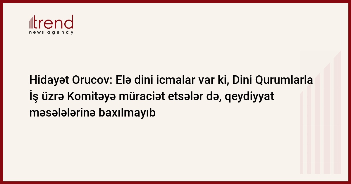Azərbaycanda elə dini icmalar var ki, Dini Qurumlarla İş üzrə Komitə yaranan gündən bu quruma müraciət etsələr də, qeydiyyat məsələlərinə baxılmayıb. Trend in xəbərinə görə, bu barədə jurnalistlərə Dini Qurumlarla İş üzrə Dövlət Komitəsinin sədri Hidayət Orucov məlumat verib.