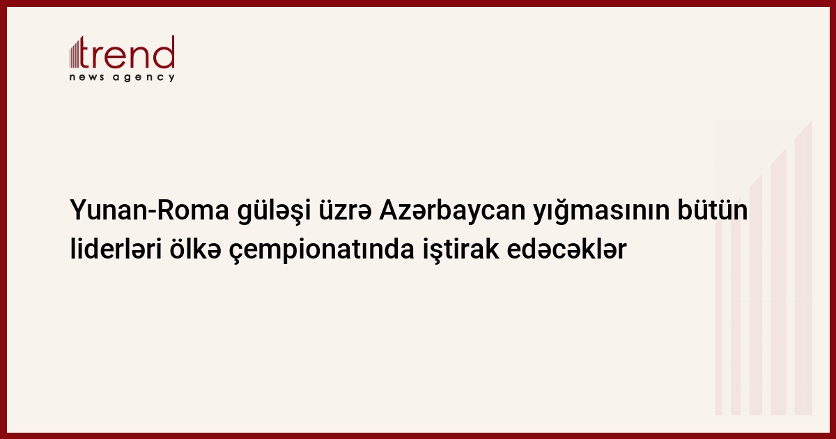 Yunan-Roma güləşi üzrə Azərbaycan yığmasının demək olar ki, bütün liderləri yanvarın 6-7-də İdman Sarayında keçiriləcək ölkə çempionatında iştirak edəcəklər.