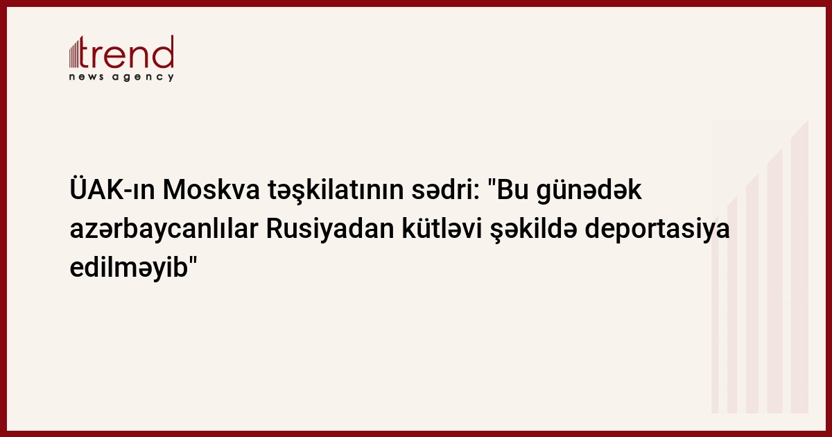 Yanvar ayı başlanandan bəri Rusiyada yaşayan azərbaycanlılar kütləvi şəkildə deportasiya edilməyiblər. Bu barədə Trend ə Ümumrusiya Azərbaycanlıları Konqresinin (ÜAK) Moskva şəhər təşkilatının sədri İlqar Hacıyev məlumat verib.