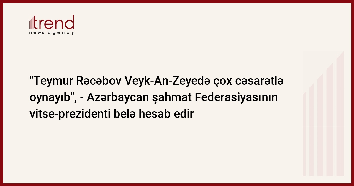 "Teymur Rəcəbov Veyk-An-Zeyedəki superturnirdə çox cəsarətlə oynayıb". Bu barədə Trend ə Milli Federasiyanın prezidenti Faiq Həsənov şahmatçının Hollandiyadakı yarışının nəticələrini qiymətləndirərkən söyləyib.