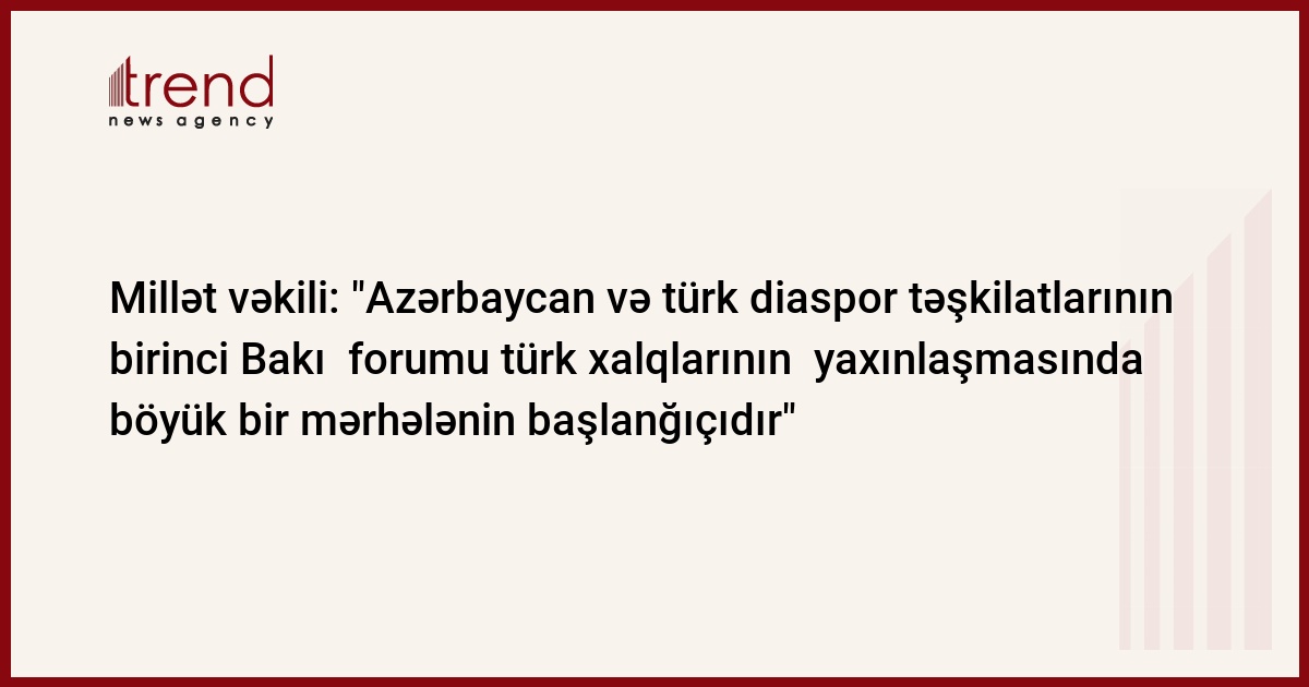 Azərbaycan, Bakı / Trend müxbir İ.Əlizadə/ Azərbaycan və türk diaspor təşkilatları rəhbərlərinin Bakıda keçirilən birinci forumu türk xalqlarının bir- birinə yaxınlaşmasında böyük bir mərhələnin başlanğıçıdır. Azərbaycanın Avropa Şurası Parlament Assambleyasındakı (AŞPA) nümayəndə heyətinin üzvü, millət vəkili Aydın Mirzəzadə belə deyib.