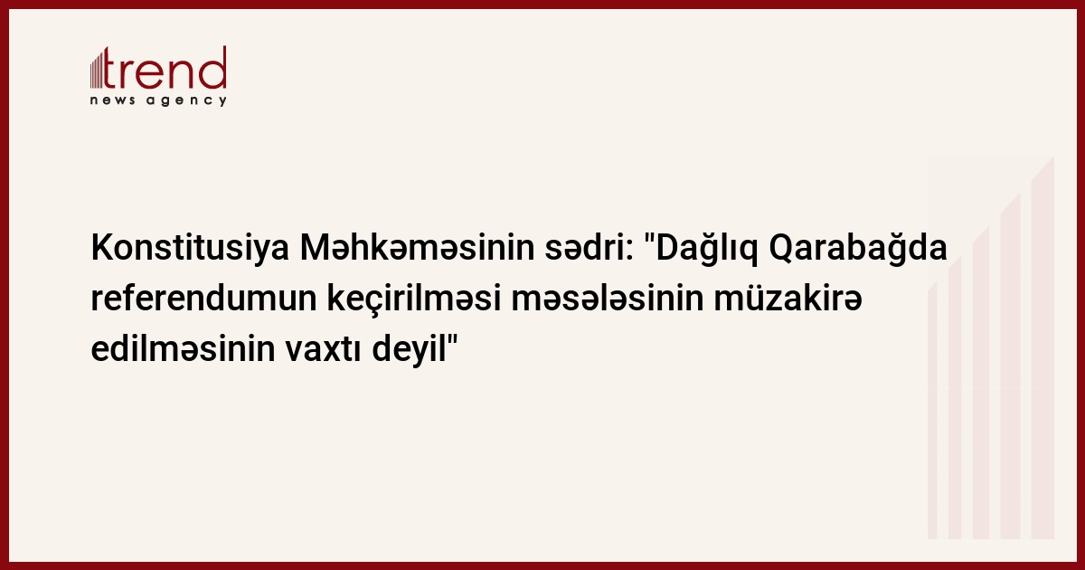 Konstitusiya Məhkəməsinin sədri bildirib ki, Dağlıq Qarabağın gələcək statusunun müəyyən edilməsi üçün referendumun keçirilməsinin müzakirəsinin vaxtı deyil.
