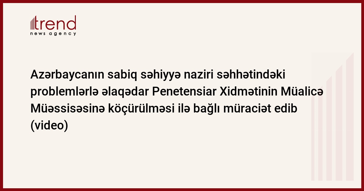 Azərbaycan, Bakı / Trend müxbir K.Zarbalieva/ Azərbaycanın sabiq səhiyyə naziri Əli İnsanov səhhətindəki problemlərlə əlaqədar Penetensiar Xidmətinin Müalicə Müəssisəsinə köçürülməsi ilə bağlı müraciət edib.