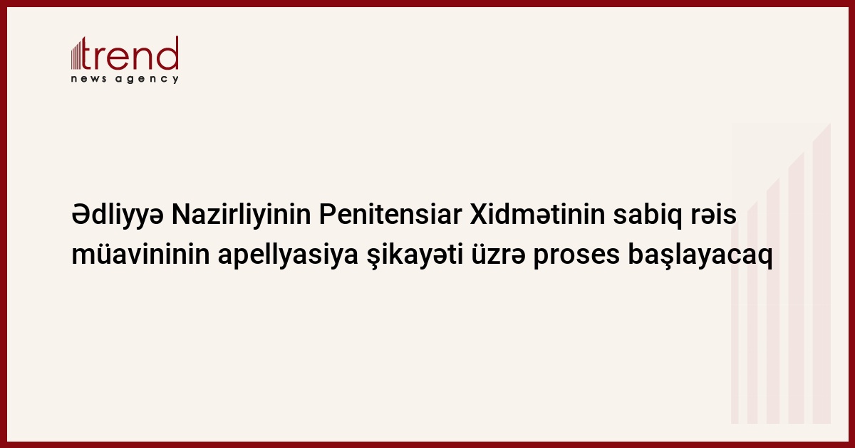 Azərbaycan, Bakı / Trend müxbir K Zərbalıyeva/ Ədliyyə Nazirliyinin Penitensiar Xidmətinin sabiq rəis müavini Gülməmməd Məmmədov və digər 23 nəfərin barəsindəki məhkəmə hökmündən verilmiş apellyasiya şikayəti üzrə mayın 24-də Apellyasiya Məhkəməsində hakim Qəzənfər Kərimovun sədrliyi ilə proses başlayacaq. Çərşənbə günü Apellyasiya Məhkəməsindən Trend ə bildirilib ki, proses təqsirləndirilənlərin iştirakı ilə keçiriləcək.
