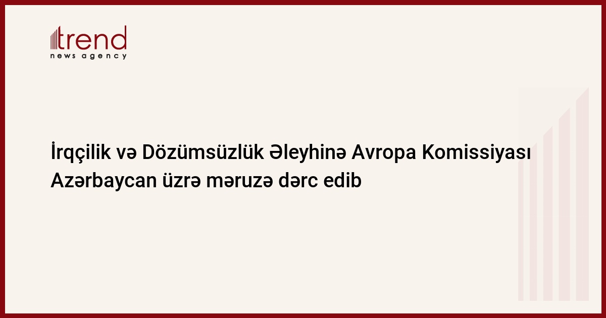 Azərbaycan, Bakı/ Trend müxbir A.Qasımova/ Avropa Şurasının İrqçilik və Dözümsüzlük Əleyhinə Avropa Komissiyası cümə axşamı Azərbaycan üzrə məruzə dərc edib. Avropa Şurasının Bakı ofisindən verilən məlumata görə, bu komissiyanın 2003-cüildən 2006-cı ilin dekabrına qədər olan dövrü əhatə edən ikinci məruzədir.