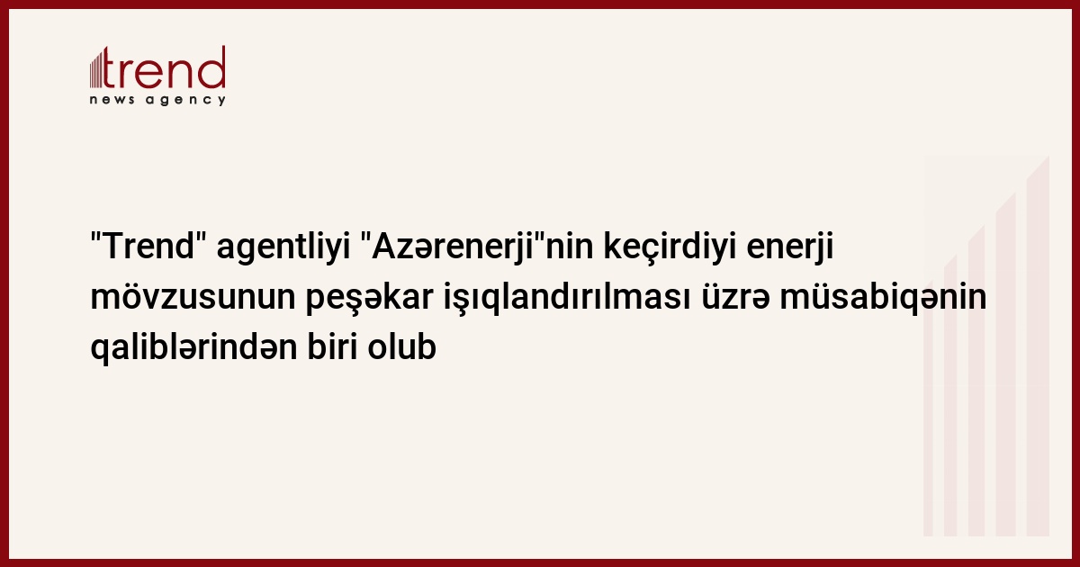 Azərbaycan, Bakı/ Trend müxbir S.Əliyev/ "Azərenerji" SC KİV-lər arasında keçirilən müsabiqənin birinci ayının yekunlarını müəyyən edib. Müsabiqənin qalibləri Trend informasiya agentliyi, "AzərTAC" dövlət agentliyi, "Azərbaycan" və "Olaylar" qəzetləri olub. Qaliblərin mükafatlandırılması iyulun 22-si - milli mətbuat gününə təyin olunub.