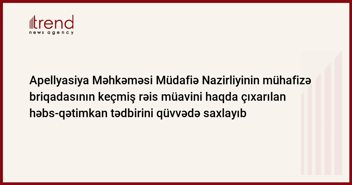 Azərbaycan, Bakı / Trend müxbir İ.Əlizadə/ Apellyasiya Məhkəməsi Müdafiə Nazirliyinin mühafizə briqadasının keçmiş rəis müavini haqda çıxarılan həbs-qətimkan tədbirini qüvvədə saxlayıb