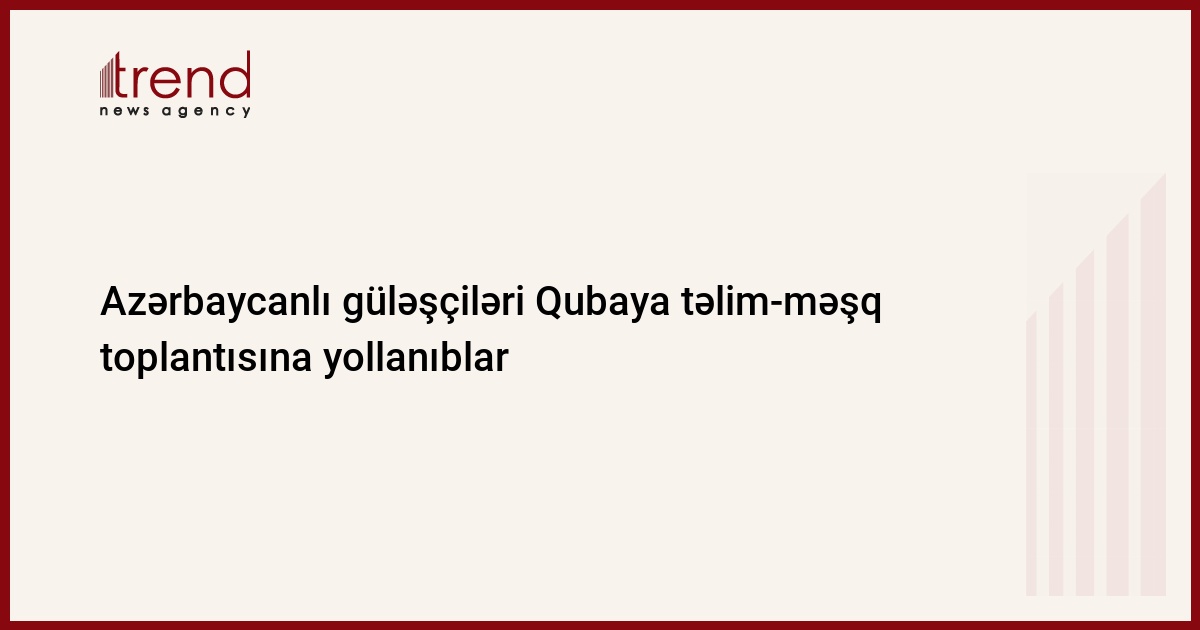 Azərbaycan, Bakı / Trend , müxbir Z.Səfərov/ Azərbaycanın sərbəst güləş yığması avqustun 20-26-da Pekində keçiriləcək gənclər arasında dünya birinciliyinə hazırlıq çərçivəsində Qubaya təlim-məşq toplanışına yollanıb.