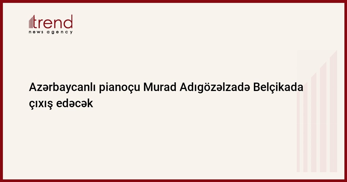 Azərbaycan, Bakı, 25 avqust / "TrendLife" , müxbir Eldar Hüseynzadə/ Tanınmış pianoçu Murad Adıgözəlzadənin payız ayları yaradıcılıq baxımından olduqca məzmunlu olacaq. Demək olar ki, onu dünyanın bütün ölkələrinə qastrol səfərləri gözləyir. "TrendLife"ın verdiyi məlumata görə, oktyabrın 6-da o, Belçikada konsert proqramı ilə çıxış edəcək. Pianoçu Brüsselin yaxınlığında keçirilən klassik musiqi festivalında iştirak edəcək. O, orada Bethovenin 3 sonatasını ifa edəcək.