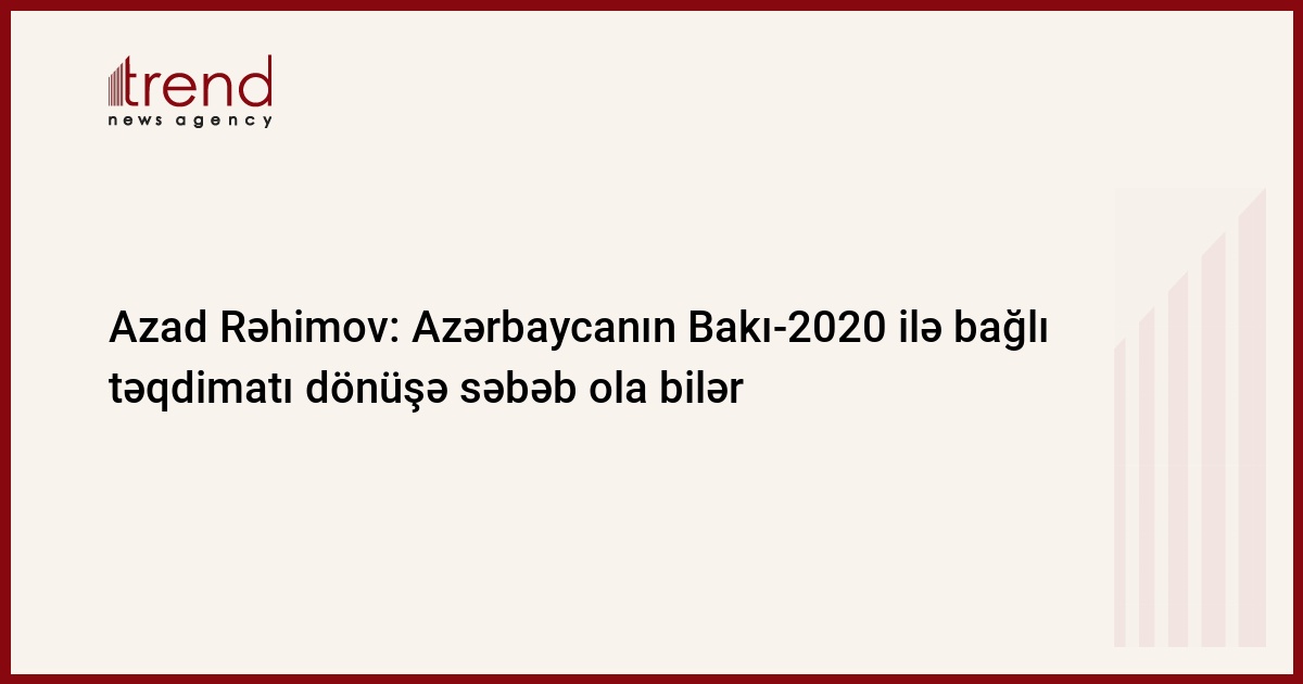 Azərbaycanın Bakı-2020 Olimpiya və Paralimpiya oyunlarına ev sahibliyi etmək üçün etdiyi təqdimat mübarizə yolunda böyük dönüşə səbəb ola bilər. Gənclər və İdman Nazirliyinin mətbuat xidmətindən bazar ertəsi Trend-ə verilən məlumata görə, bunu Azərbaycanın gənclər və idman naziri Azad Rəhimov beynəlxalq "inside the games" portalına müsahibəsində deyib.