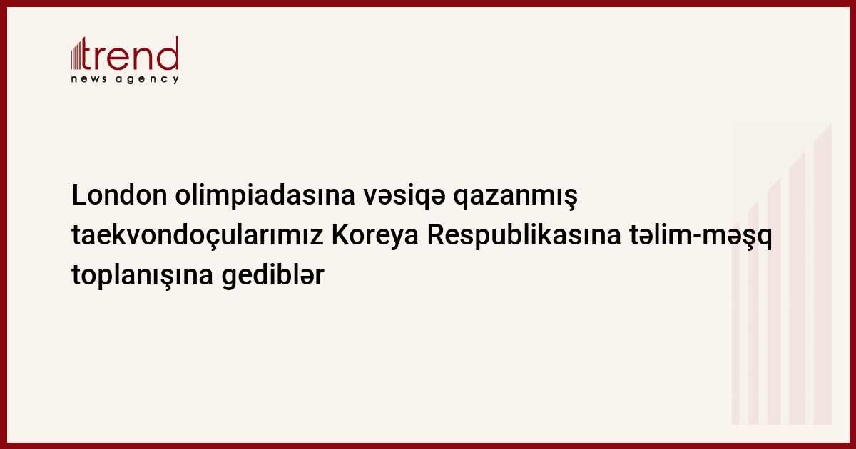 London olimpiadasına vəsiqə qazanan Azərbaycan taekvondoçuları qarşıdakı məsul yarışa son hazırlıqları keçmək üçün Koreya Respublikasına yollanıblar. Bu barədə Trend-ə Azərbaycan Taekvondo Federasiyasının mətbuat xidmətinin rəhbəri Sənan Məhərrəmov məlumat verib.